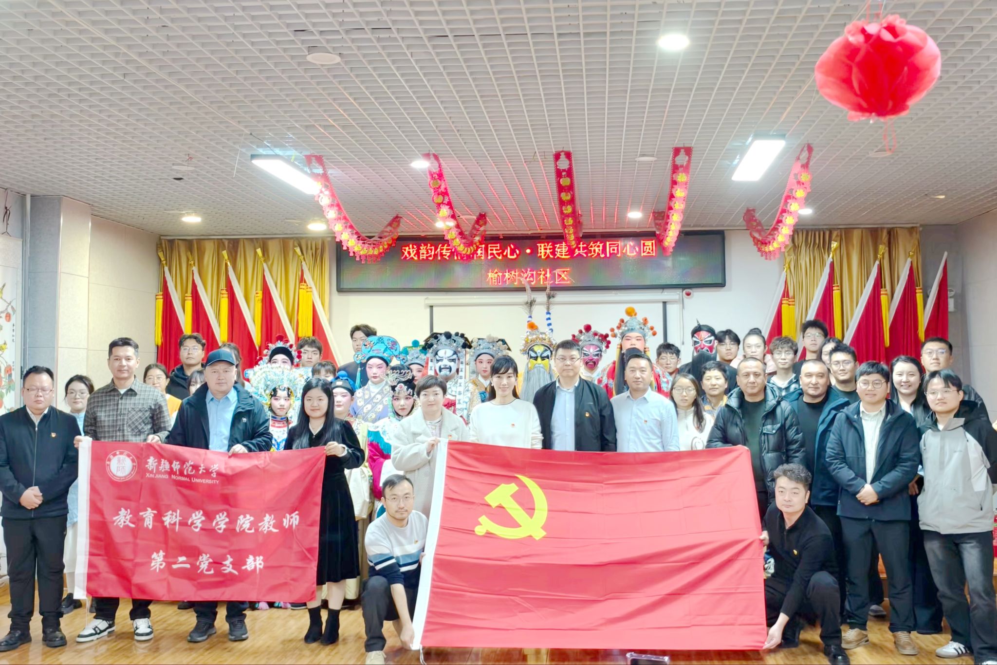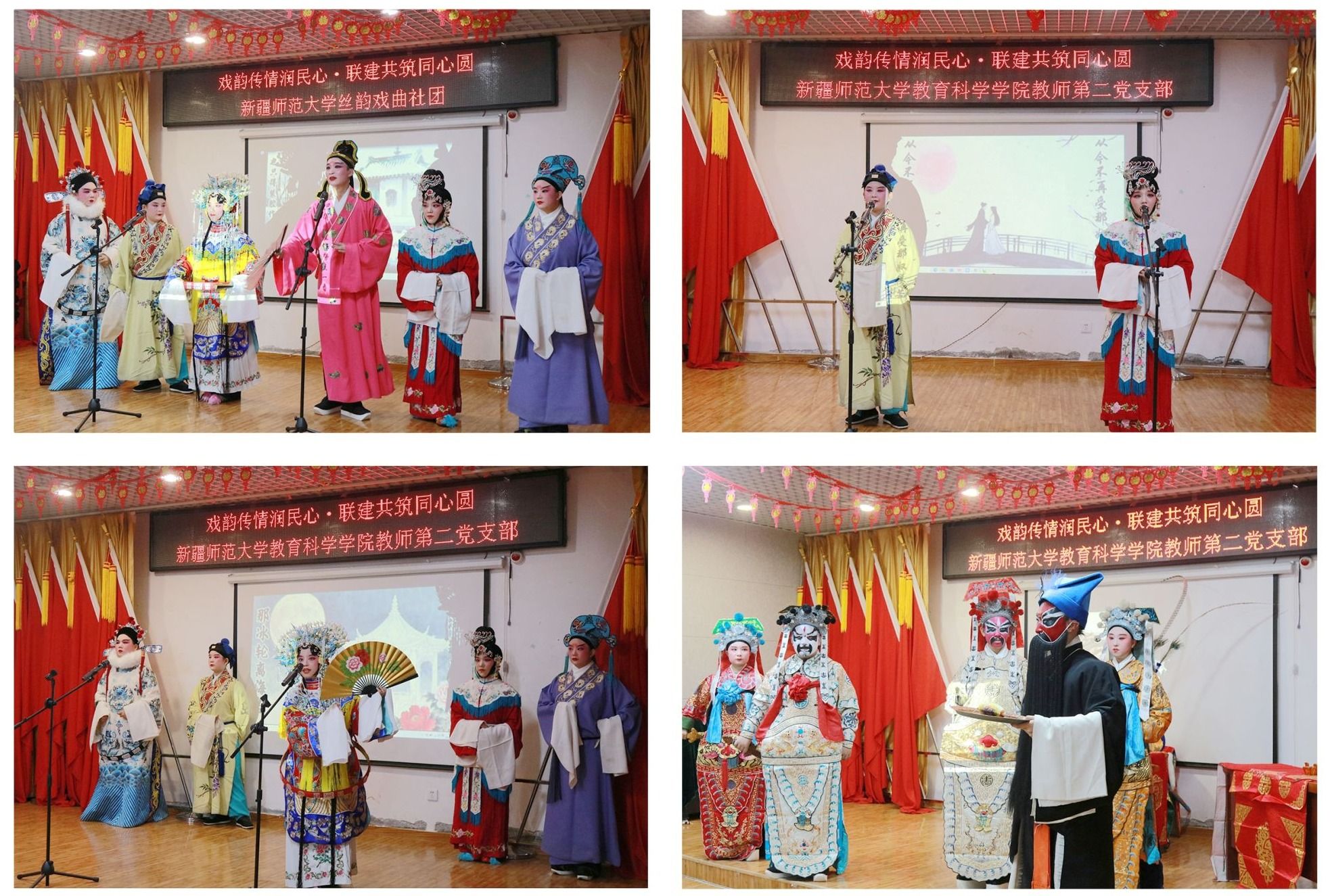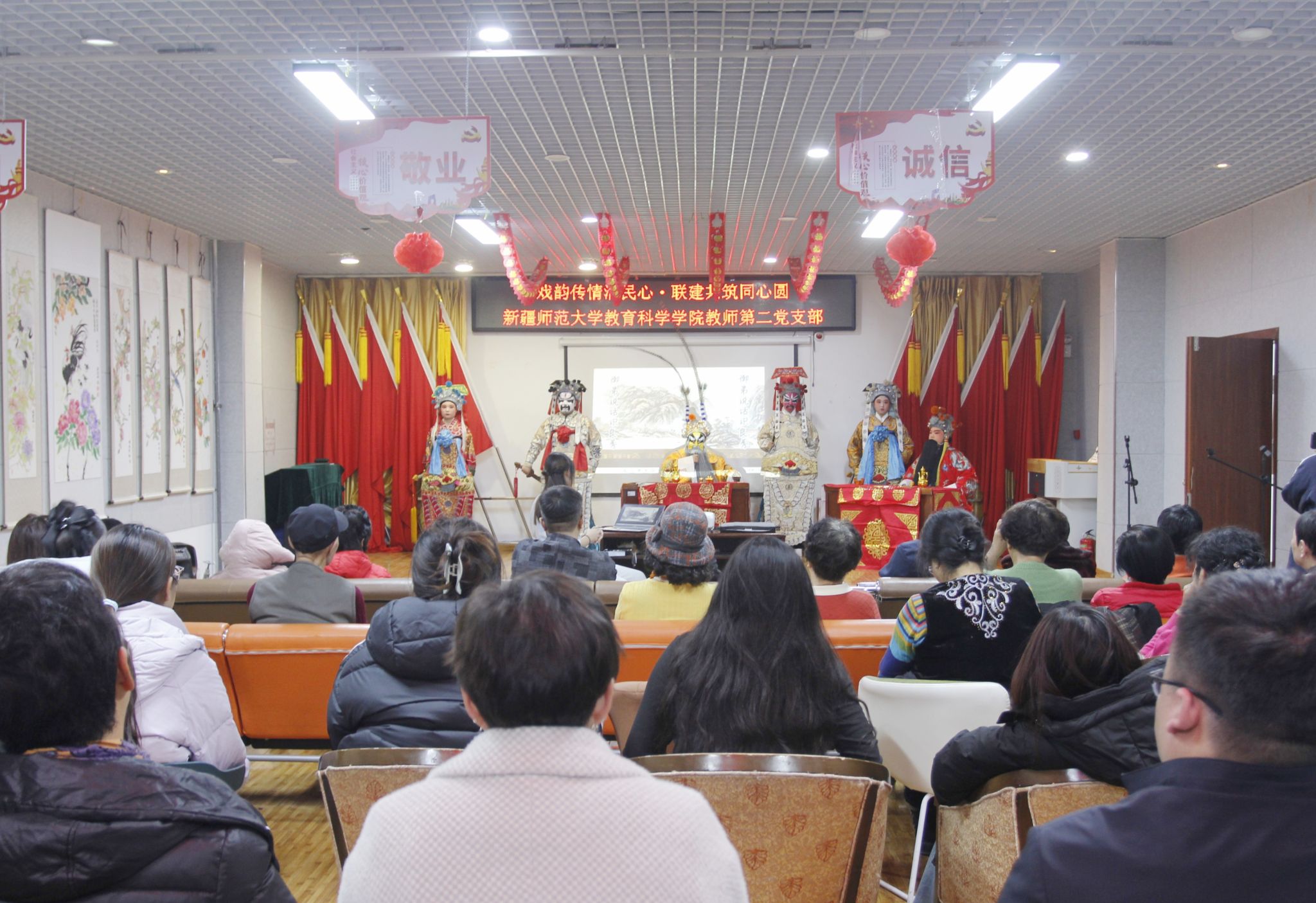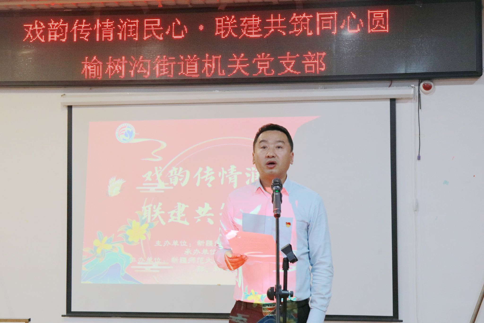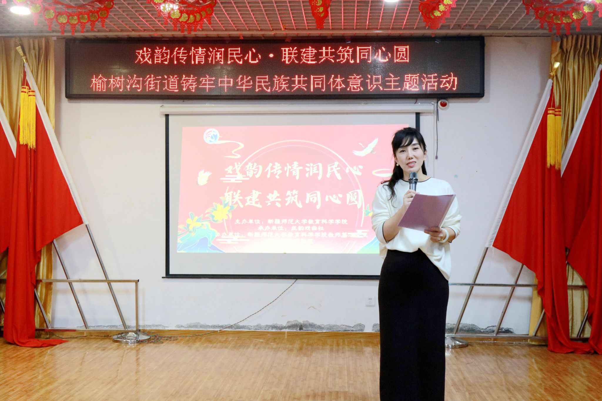 为扎实推进文化润疆工程和文化育人工作,进一步丰富师生及社区居民精神文化生活,提升样板党支部建设水平,11月30日下午,我校教育科学学院党委指导教师第二党支部联合榆树沟街道机关党支部在榆树沟社区共同举办了“戏韵传情润民心·联建共筑同心圆”戏曲进社区活动。水磨沟区榆树沟街道党工委副书记孙广庆、我校教育科学学院教师第二党支部书记斯雯,学院师生党员代表、丝韵戏曲社学生和榆树沟街道辖区居民近100人参加活动。