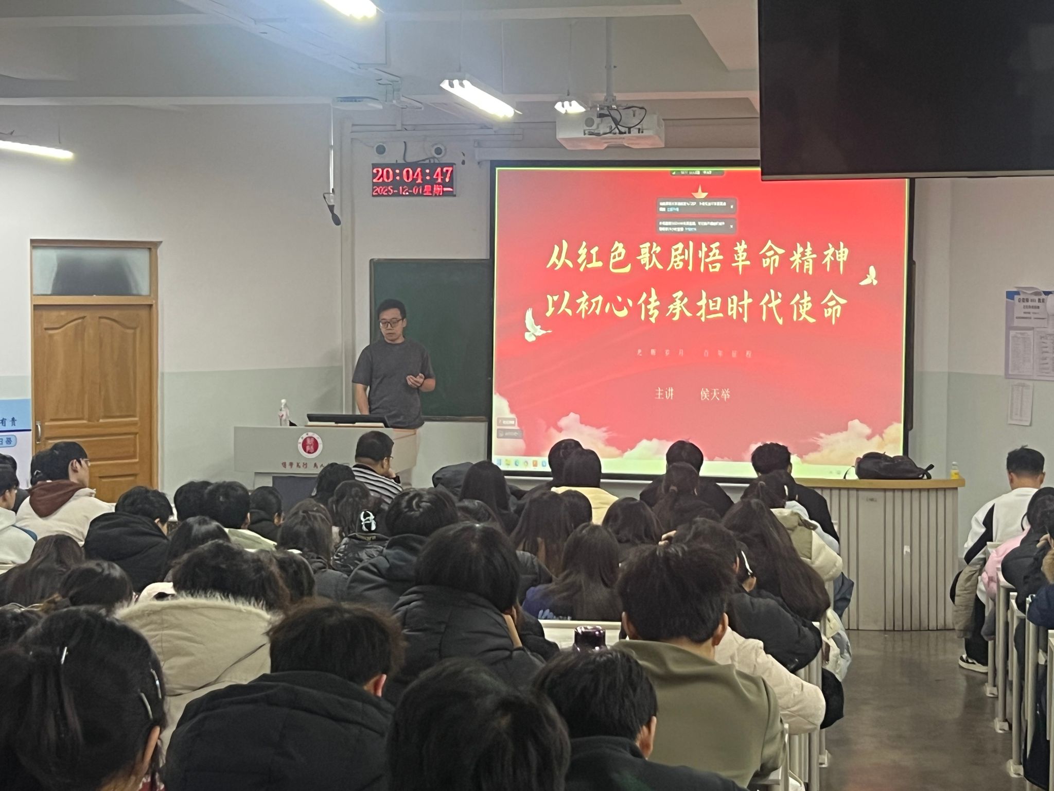 本次培训采用线上线下混合式培训模式,培训课程紧扣党员发展核心要求与青年学生成长特点,安排5场专题授课及1次支部研讨。12月1日,首场讲座由我校音乐学院教师侯天举主讲,以《从红色歌剧悟革命精神,以初心传承担时代使命》为题,通过解析红色歌剧的历史背景与精神内涵,将艺术鉴赏与党性教育有机融合,让学员在沉浸式学习中感悟革命先辈的初心使命,课堂互动氛围热烈。后续课程将全面覆盖党性修养、党务知识、使命担当等关键内容。