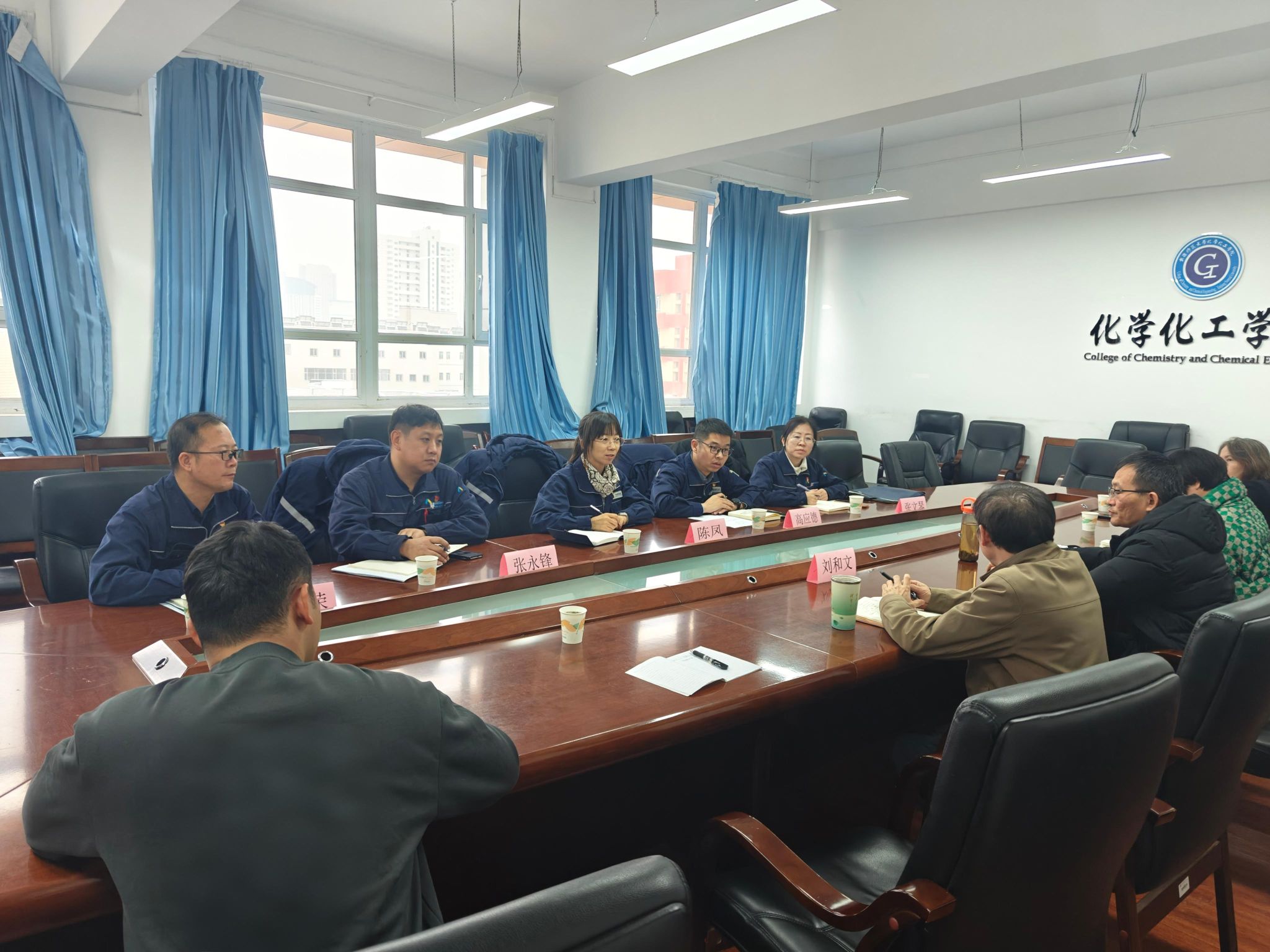 12月2日下午,华泰重化工有限责任公司主要领导及技术团队一行到访我校化学化工学院并座谈交流。我校化学化工学院院长刘和文、多名骨干教师出席了会议。