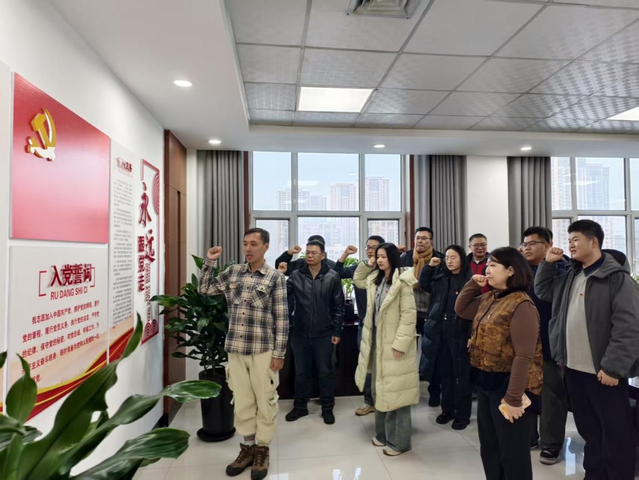 活动伊始,在学院副院长冯人海同志的带领下,全体党员面向党旗,高举右拳,庄严重温入党誓词,在铿锵誓言中坚定初心使命。
