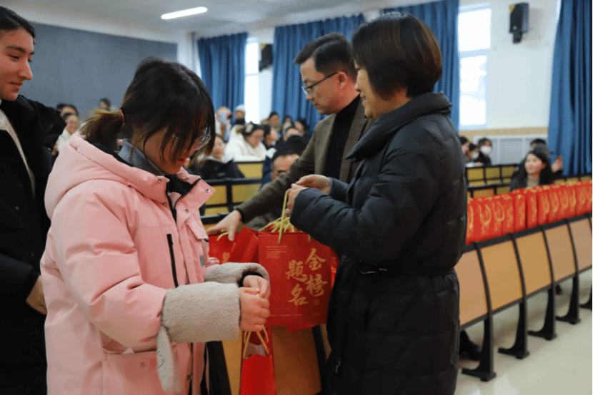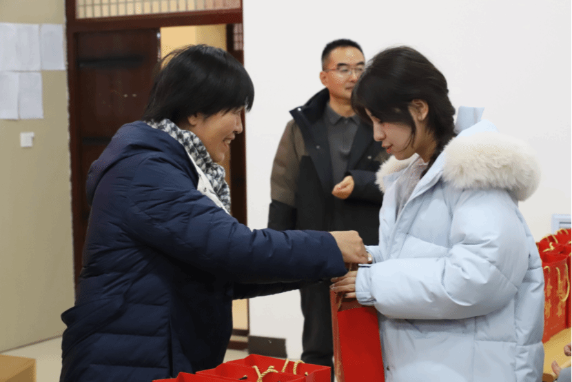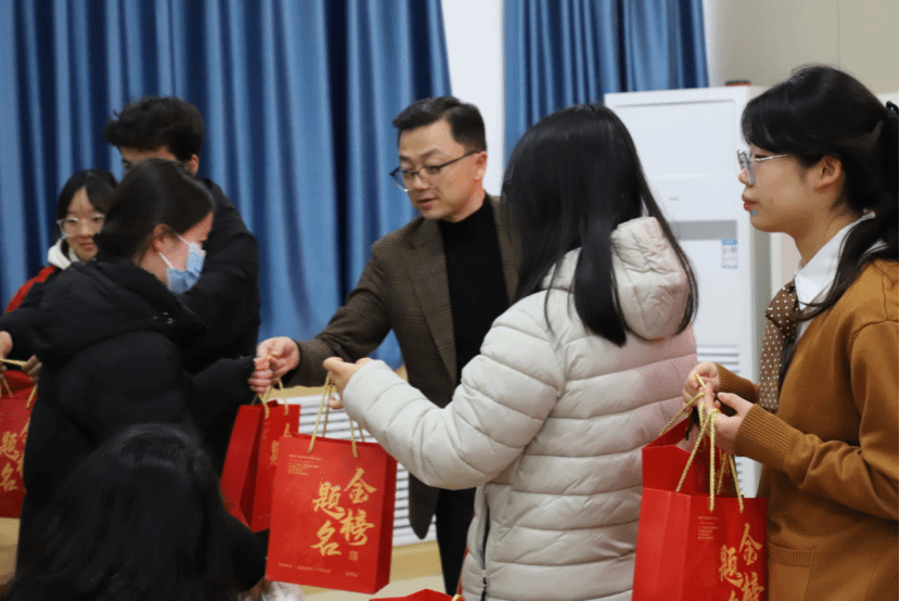 福袋虽小,但情谊浓厚,各位老师亲手将装满关怀的慰问福袋递到每一位考研学生手中,每一样物品都饱含着学院对学子们的深切期许与暖心祝福。