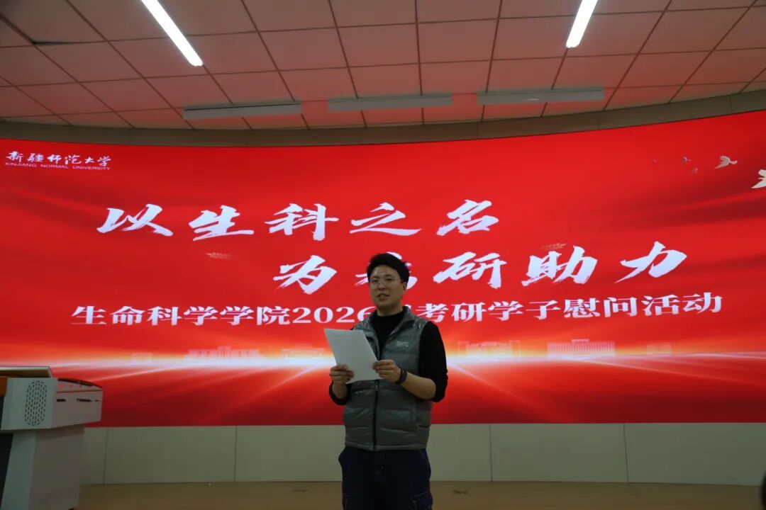 为切实关怀2026届考研学生的备考状态,为考研学子们加油鼓劲,缓解备考压力,12月15日下午,我校生命科学学院在笃学楼118教室举行“以生科之名,为考研助力”慰问活动。学院领导班子、系主任、年级辅导员及2026届全体考研学子参加。