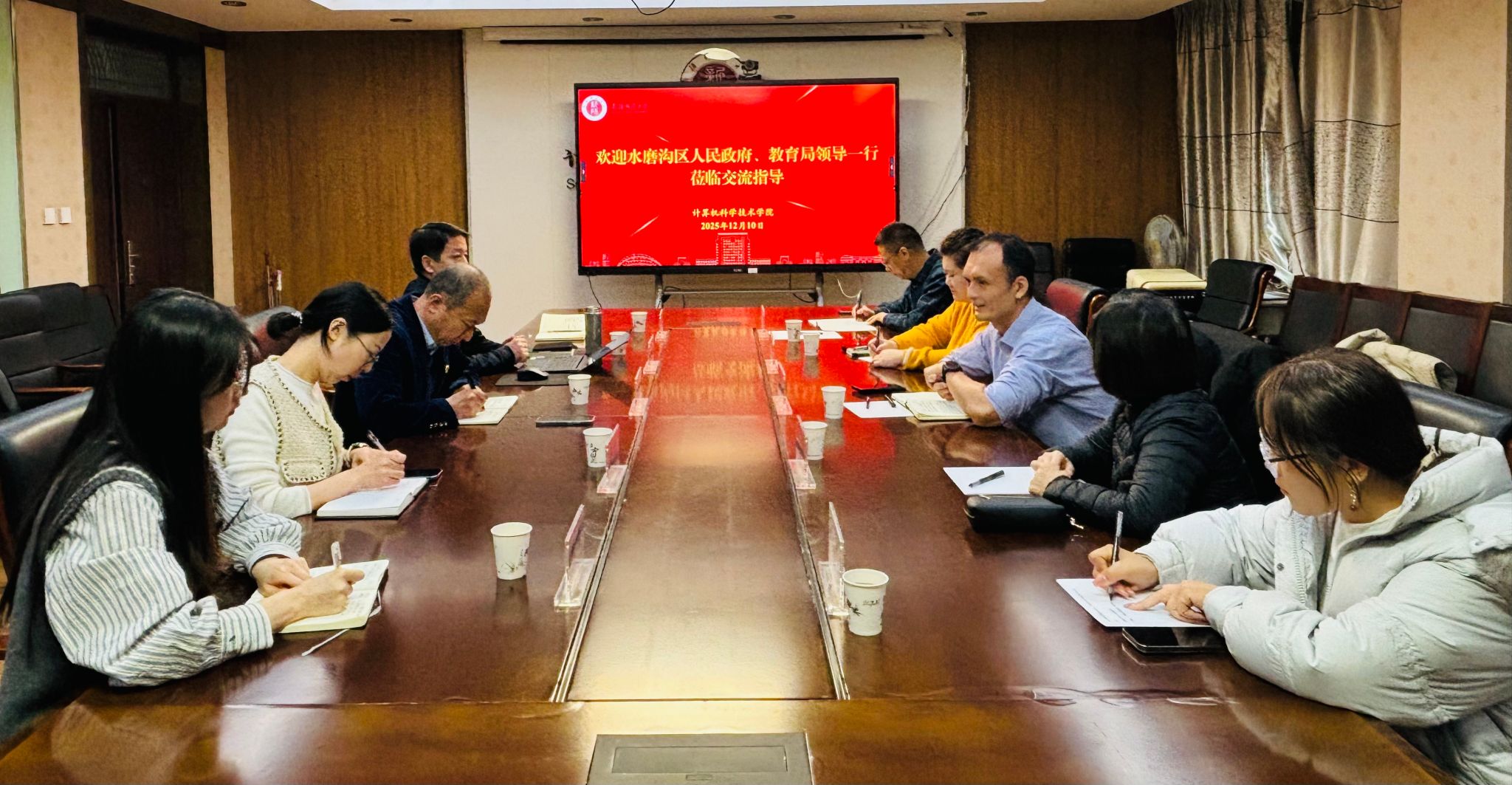 12月10日,乌鲁木齐市水磨沟区人民政府党组成员、副区长杨鹏,水磨沟区教育局党委委员、区教育工会主席李潇一行来到我校计算机科学技术学院开展调研交流。学院党委书记张海军,党委副书记、院长齐向伟及双方相关部门负责人参加座谈,围绕教育数字化转型及多领域协同发展展开深度对话。