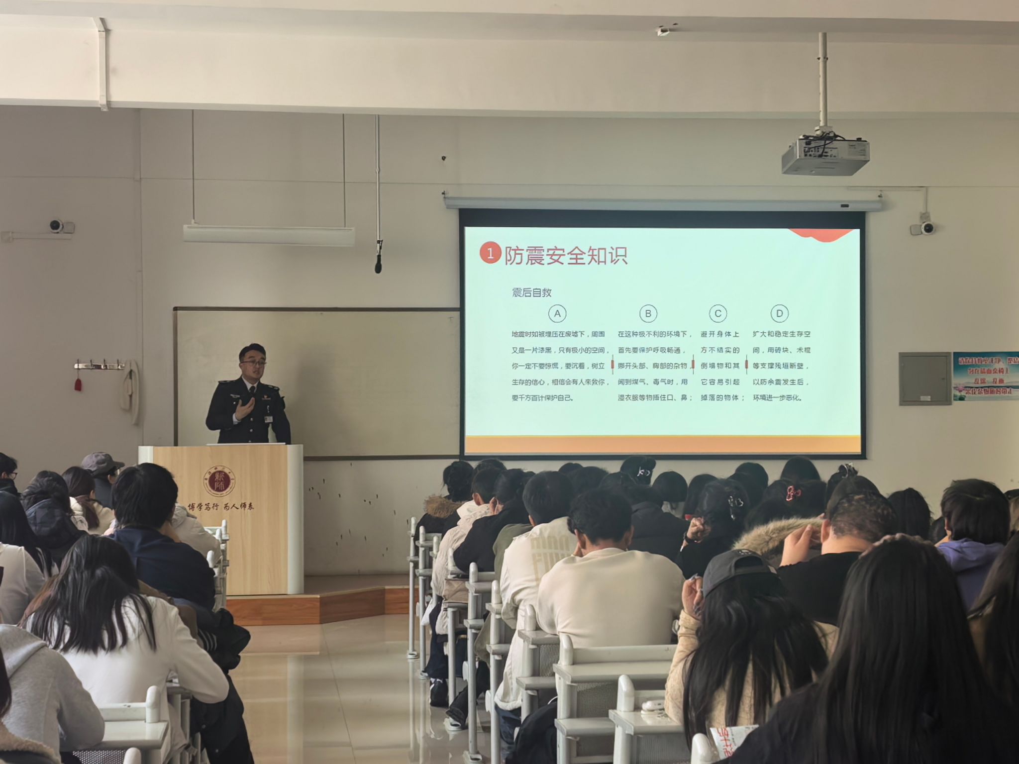 为落实自治区有关工作要求,提升全校师生在突发地震灾害中的应急避险、自救互救及快速疏散能力,3月17日下午,学校邀请卫民安安全宣传中心的教官,在温泉校区二号教学楼322合堂教室,组织200余名师生参加了防震减灾安全培训及应急疏散演练。