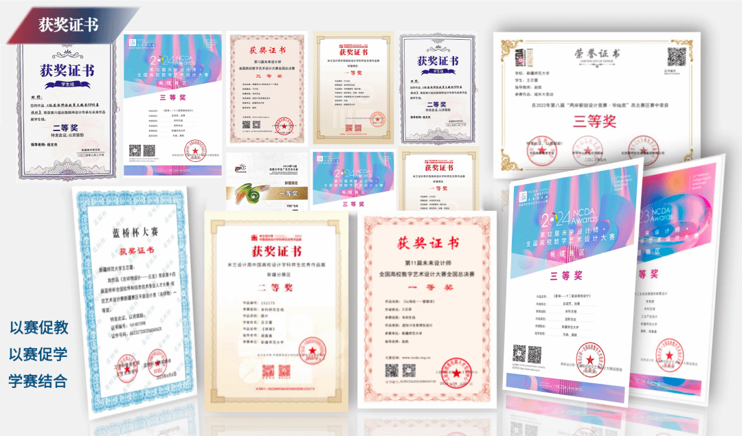 不仅如此,在近期教育部学科竞赛的其他领域,我校美术学院师生持续发力,在艺术设计、创意绘画、美术理论研究等多个方向均取得突出成绩。教师团队共获9项国家级奖项,实现了教师团队在艺术创作、学术研究、课程建设三大核心领域的奖项全覆盖,这一成果体现了学院学科建设的全面性。与此同时,学生获国家级奖项42项(一等奖9项、二等奖13项、三等奖14项、优秀奖6项),实现了教学质量与学习效果的双向提升,让该学科在高水平赛事中持续保持竞争力,也证明全链条人才培养体系的成熟度与领先性,为学科高质量发展奠定基础。