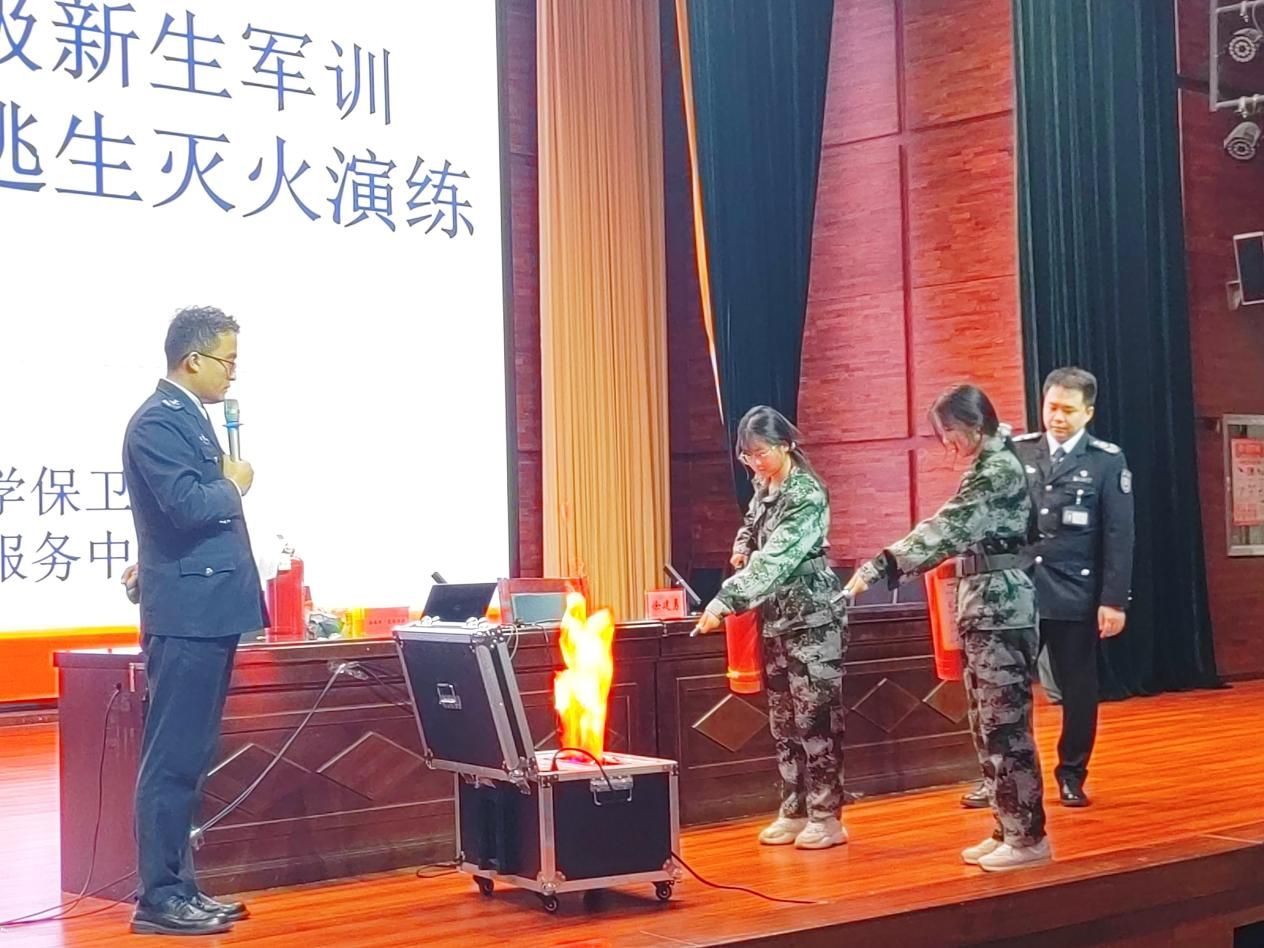 活动从消防安全知识讲座开始,教官分别围绕多方面内容展开知识普及。通过实际案例,剖析在宿舍因私拉乱接电线、违规使用大功率电器等用电不当行为引发的火灾,强调规范用电的重要性;指出电气故障、违规用火、易燃物品管理不善是学校火灾发生的主要原因;详细讲解火灾发生时拨打“119”报警电话的要点,包括准确说明火灾地址、起火部位等信息;现场演示干粉灭火器“提、拔、握、压”的使用方法,传授火灾与地震逃生技巧。