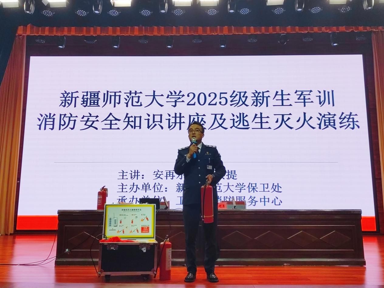 为切实提升2025级新生应对火灾、地震等突发灾害的安全意识与应急处置能力,9月27日,学校相关部门特邀新疆卫民安消防服务中心教官,分别在温泉校区昆仑讲堂、昆仑校区音乐厅组织开展了消防安全知识讲座、逃生演练、灭火演练及地震演练活动,共800余名新生代表参加培训。