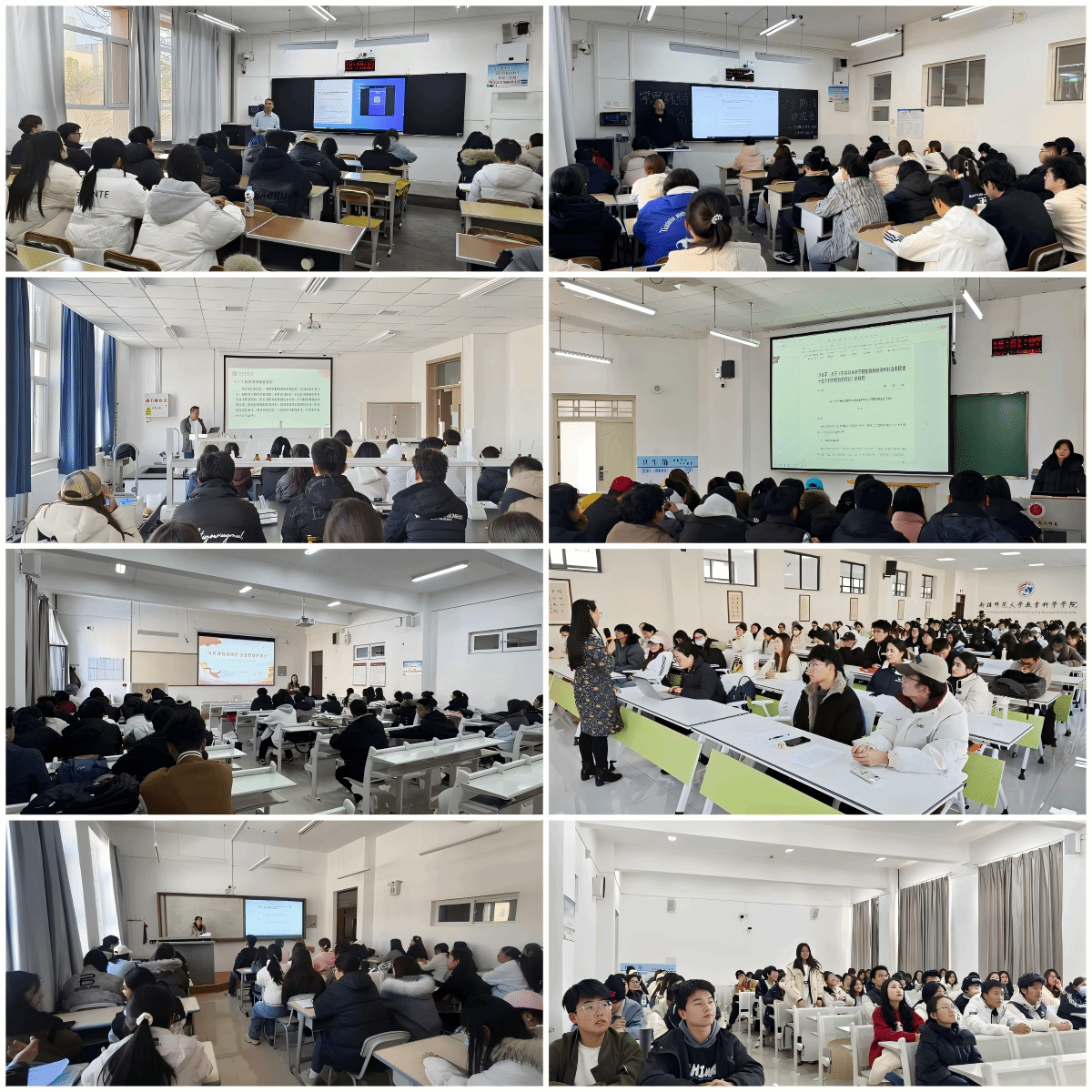 11月12日,各学院组织全体学生专题学习了《习近平:关于〈中共中央关于制定国民经济和社会发展第十五个五年规划的建议〉的说明》《接续推进中国式现代化》等内容,引导学生深刻理解国家发展宏伟蓝图与时代使命,激发新师学子为强国建设、民族复兴奋发读书的行动自觉。在学风建设方面,针对毕业年级继续开展考研复习指导、学科重难点及备考指导活动;针对非毕业年级依托“新师朋辈学习互助”计划、“悦读青春”新师读书活动之新生晚自习“一讲一练”,培养学生良好学习互助习惯,引导学生尽早树立考研意识。此外,针对2025年下半年师范生教师职业能力测试笔试考试,各班级还开展了考风考纪教育,强化学生法治意识、纪律意识、诚信意识。在就业择业观教育中,毕业班则详细解读考研时间规划、公务员及事业编岗位筛选策略等。