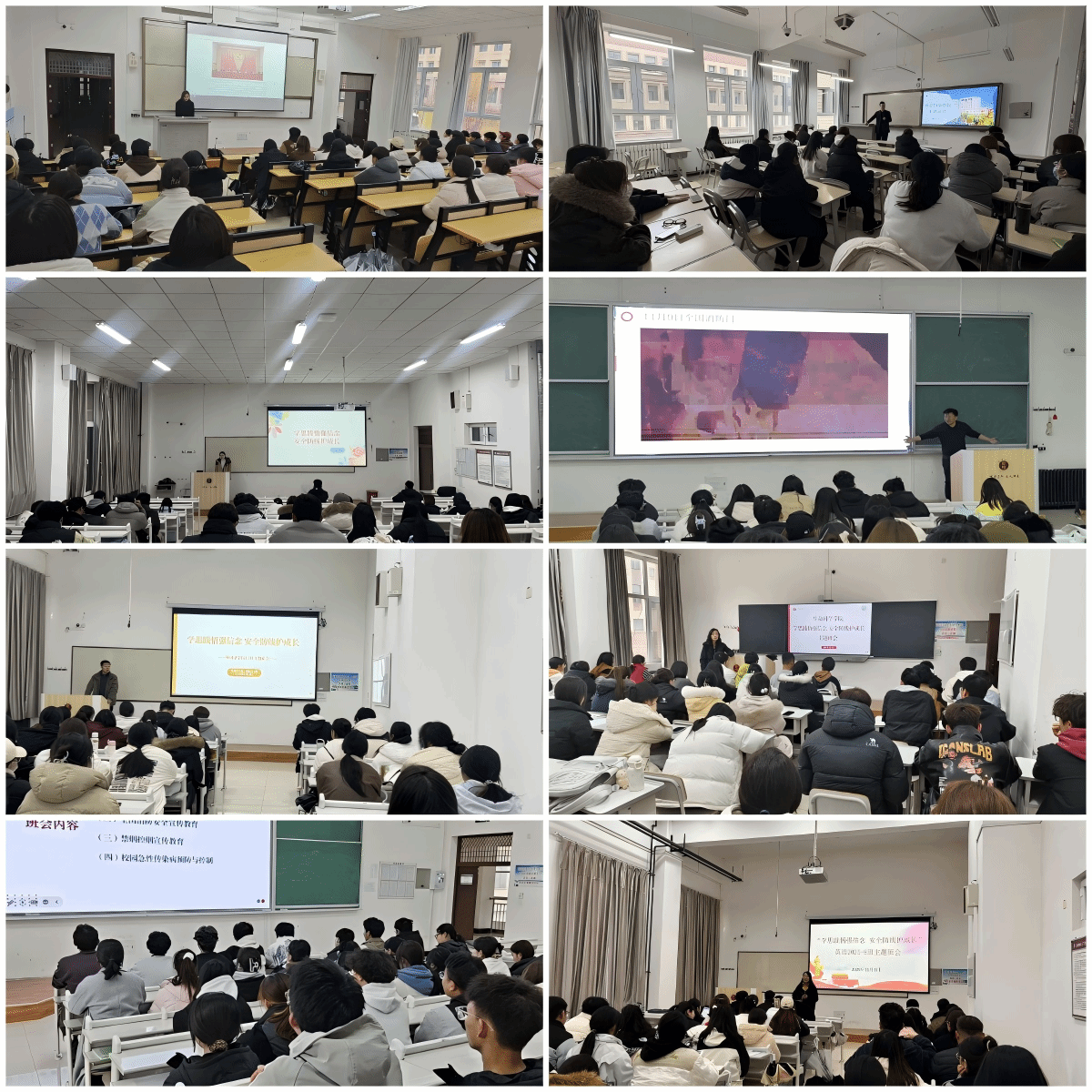 11月5日,各学院组织学生学习《中国共产党第二十届中央委员会第四次全体会议公报》《中共中央关于制定国民经济和社会发展第十五个五年规划的建议》及习近平总书记在会议期间的重要讲话精神,引导学生深刻感悟新时代党的治疆方略的成功实践,自觉将全会精神内化于心、外化于行。同时,紧扣“119全国消防日”,开展消防安全知识普及活动,重点强调宿舍违规使用大功率电器等消防安全隐患;通过组织观看消防员救援纪实片,强化消防安全警示教育,号召全体学生主动排查身边消防安全隐患,共建平安校园。此外,各学院还组织全体学生观看《健康中国必定是无烟中国》公益视频,重申校园禁烟控烟规定,引导学生深刻认识吸烟危害,积极践行健康文明生活方式。