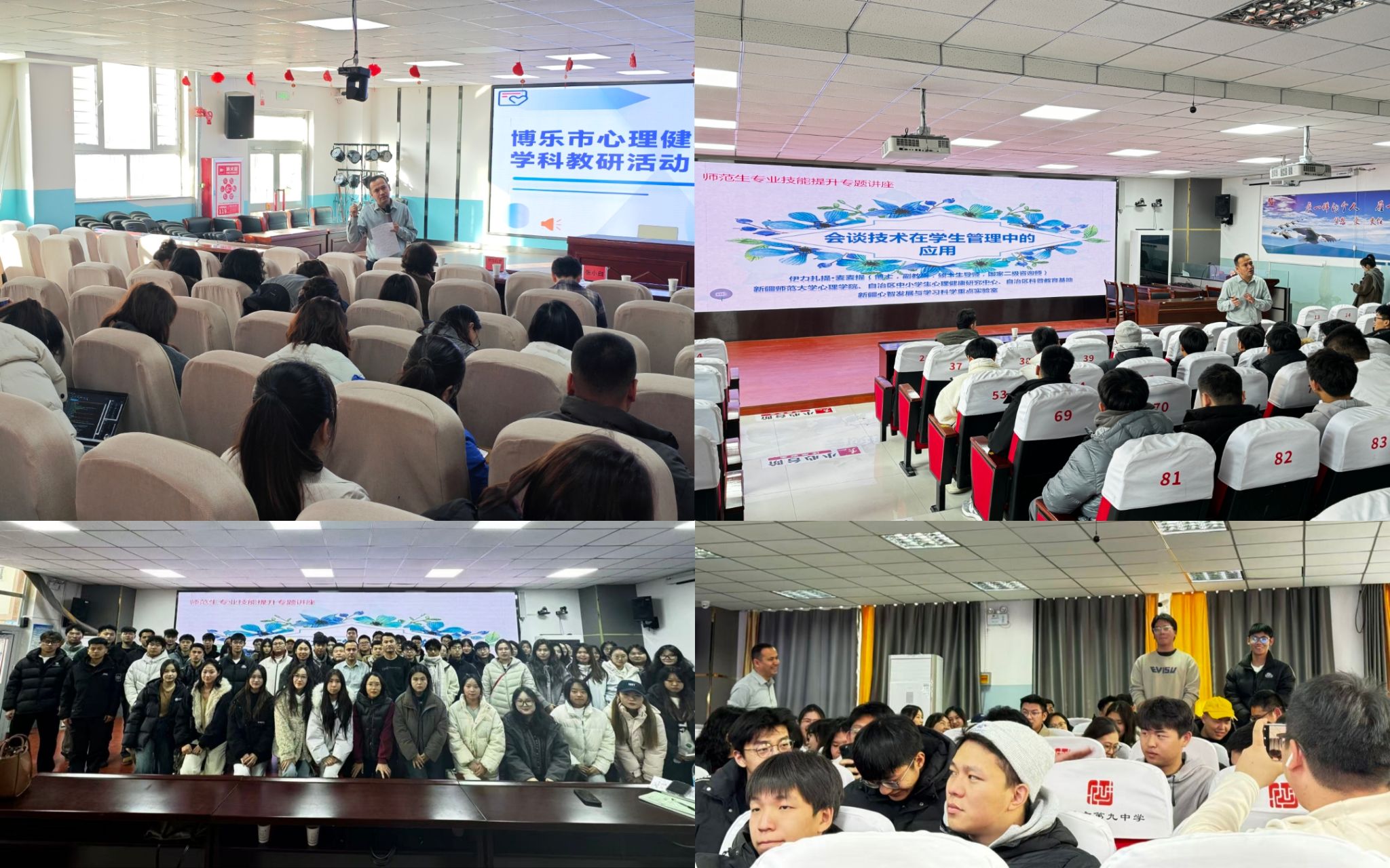 在霍城县,教务处处长关文军代表学校与霍城县教育局正式签署2026年实习支教工作协议,进一步明确双方职责,优化协同机制,为后续实习支教工作的规范化、长效化发展奠定坚实基础。心理学院副院长伊力扎提·麦麦提在博乐市面向全体实习生和中小学心理健康教师及骨干班主任开展《会谈技术在学生管理工作中的应用》《心理风险学生的识别与干预》专题讲座,并牵头组织心理健康教研活动,通过公开课观摩与研讨,促进校地教师专业协同发展。