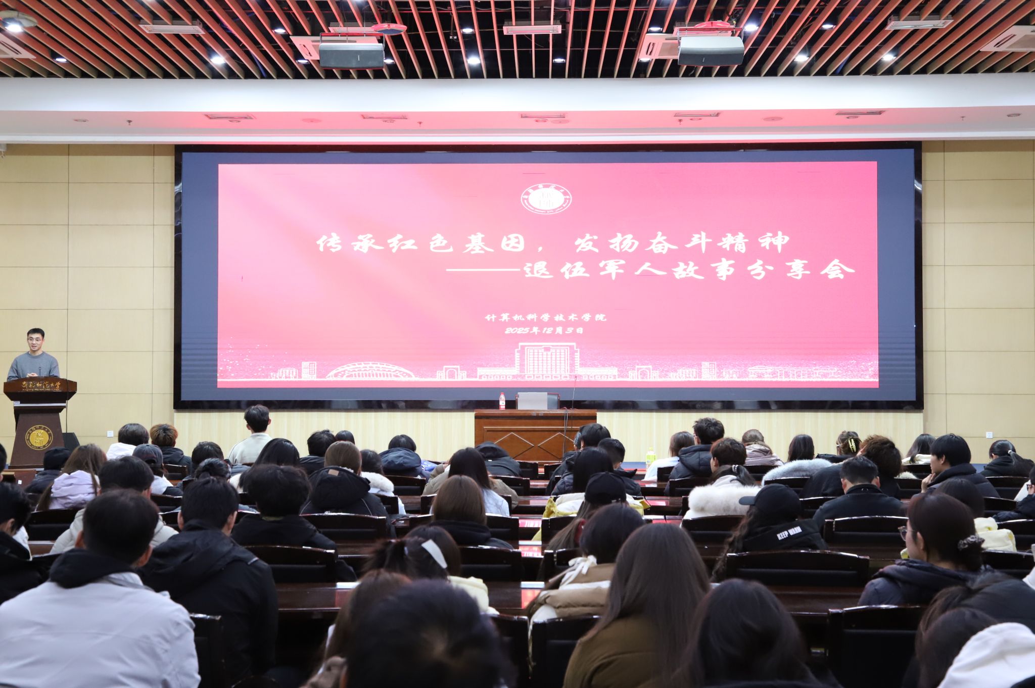 为传承红色基因,引导青年学子厚植家国情怀,践行“新师・石榴情”1+5铸牢中华民族共同体意识教育实践行动,12月3日,我校计算机科学技术学院在国际教育大厦一楼报告厅举办“传承红色基因,发扬奋斗精神”退伍军人故事分享会,邀请退役军人赵潇枫、葛金龙讲述军营故事,学院辅导员及2025级部分新生参加。