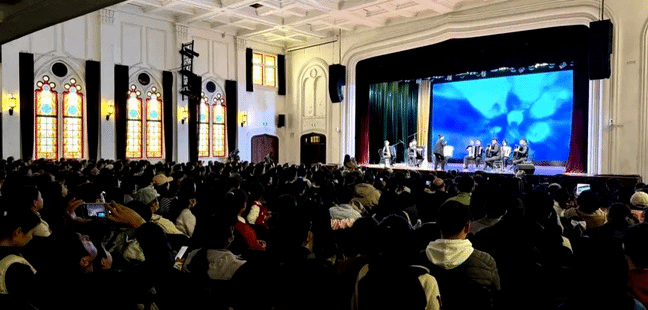 我校“天山神韵”手风琴乐团在上海市第三女子中学百年建筑“景莲堂”演出现场