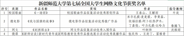 经过活动组委会评审,最终我校推选的校园歌曲《一场雨》以其深情的旋律和动人的歌词,成功夺得校园歌曲作品征集活动“优秀原创作品”奖;微电影《我与国旗的故事》荣获微电影作品征集活动“优秀推广作品”奖;网文作品《到西部去》获得网文作品征集活动“优秀入围作品”奖;《新师访谈|新时代青年说》微课作品荣获网络教育优秀作品推选展示活动“优秀展播作品”奖;我校荣获“优秀组织奖”。这些荣誉的取得,不仅展示了我校师生的创作才华和创新能力,为我校赢得了广泛的社会赞誉和认可,也是我校积极推进校园网络文化建设、扩大校园网络文化影响力的显著成果。