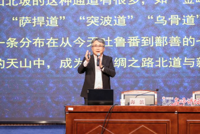 海滨教授以《西域文化与唐诗之路》为题进行主题讲座。海滨教授在讲座中通过细致的文献梳理和分析,描述了西域唐诗之路的自然与人文图景,展示出西域唐诗之路形成、发展的文化背景,揭示了西域文化在唐诗审美风格和语汇上留下的深深烙印。通过海滨教授的讲座,进一步加深了师生对唐诗地理与历史意涵的理解,更近距离体会唐王朝社会的开放格局和唐人在西域的活动开拓了唐代诗人的胸襟视野,感受以唐诗为桥、以地图为媒的趣味与温度。精彩的讲座得到现场师生一致好评。