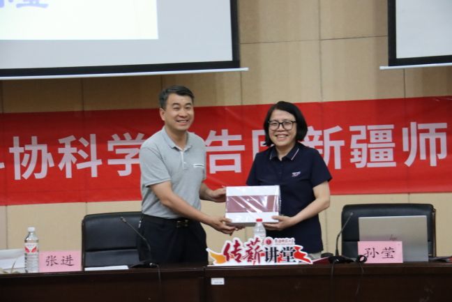讲座结束后,现场师生积极踊跃提问,与主讲嘉宾展开互动交流,主讲嘉宾进行了十分详细的回复和解答。刘俊、张进代表学校分别向两位主讲人赠送“新师礼物”。