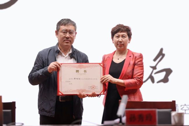 我校副校级领导兼马克思主义学院学术院长孙秀玲教授为辛向阳研究员颁发客座教授聘书