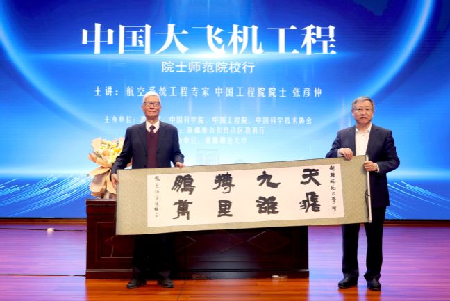 4月23日上午,由教育部和中国科学院、中国工程院、中国科协联合主办,新疆维吾尔自治区教育厅协办的“院士师范院校行”活动走进我校,航空系统工程专家、中国工程院院士张彦仲教授在温泉校区昆仑讲堂作题为《中国大飞机工程》的专题报告。