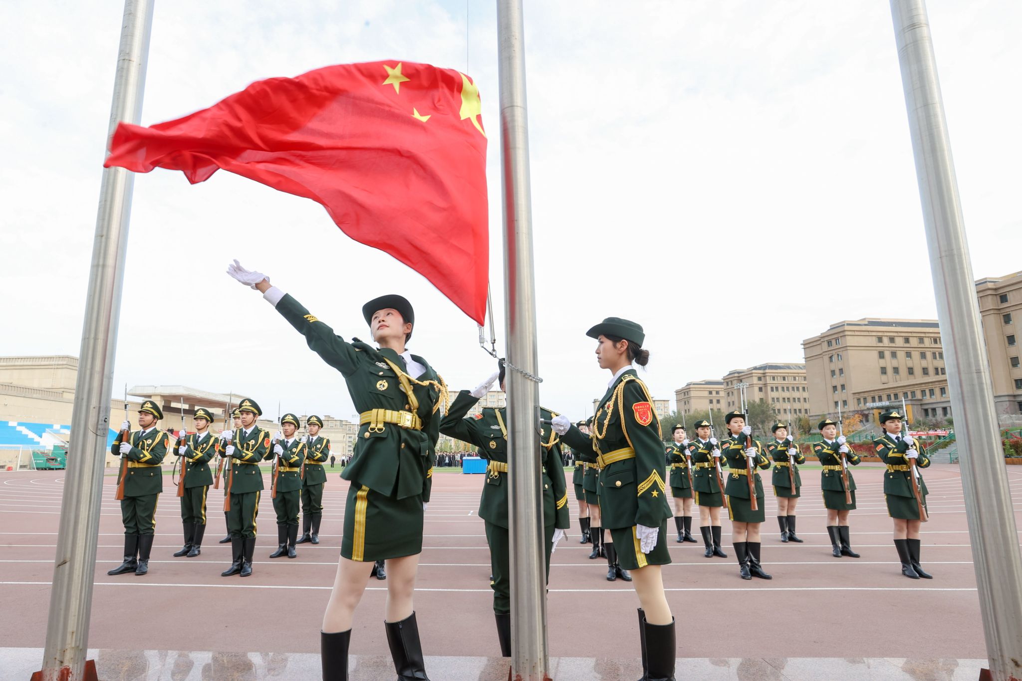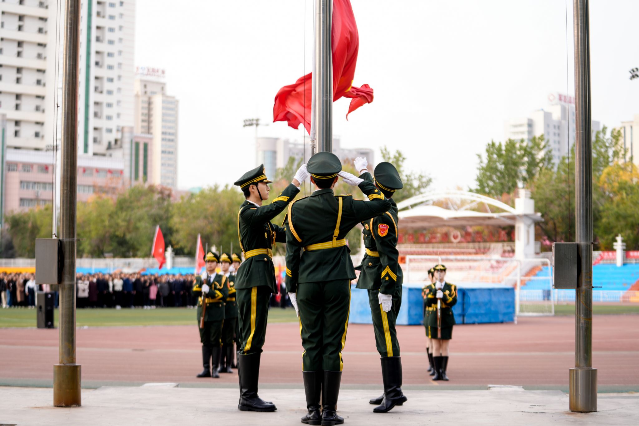 为庆祝中华人民共和国成立76周年,大力弘扬爱国主义精神,提升师生集体荣誉感,激发广大师生爱党爱国赤诚情怀,10月1日清晨,我校在温泉校区、昆仑校区体育场同步举行庆祝中华人民共和国成立76周年升旗仪式暨“同心筑梦贺华诞,踔厉奋发启新程”国旗下的思政课活动。校党委书记蒋海军,校党委副书记、校长艾尼娃尔·艾克木分别在温泉校区和昆仑校区讲授国旗下的思政课。校党委常委、纪委书记蒋方珍,校党委常委、副校长陈彤分别主持两校区升旗仪式。