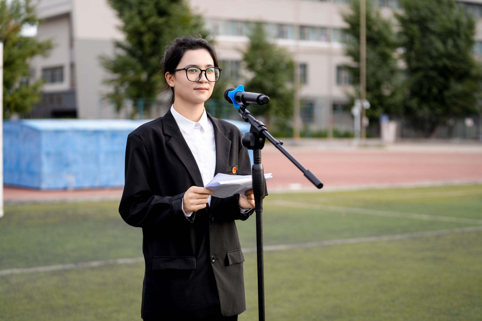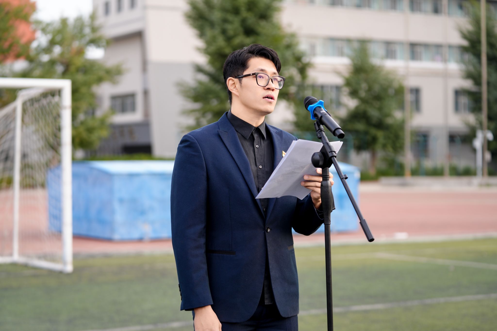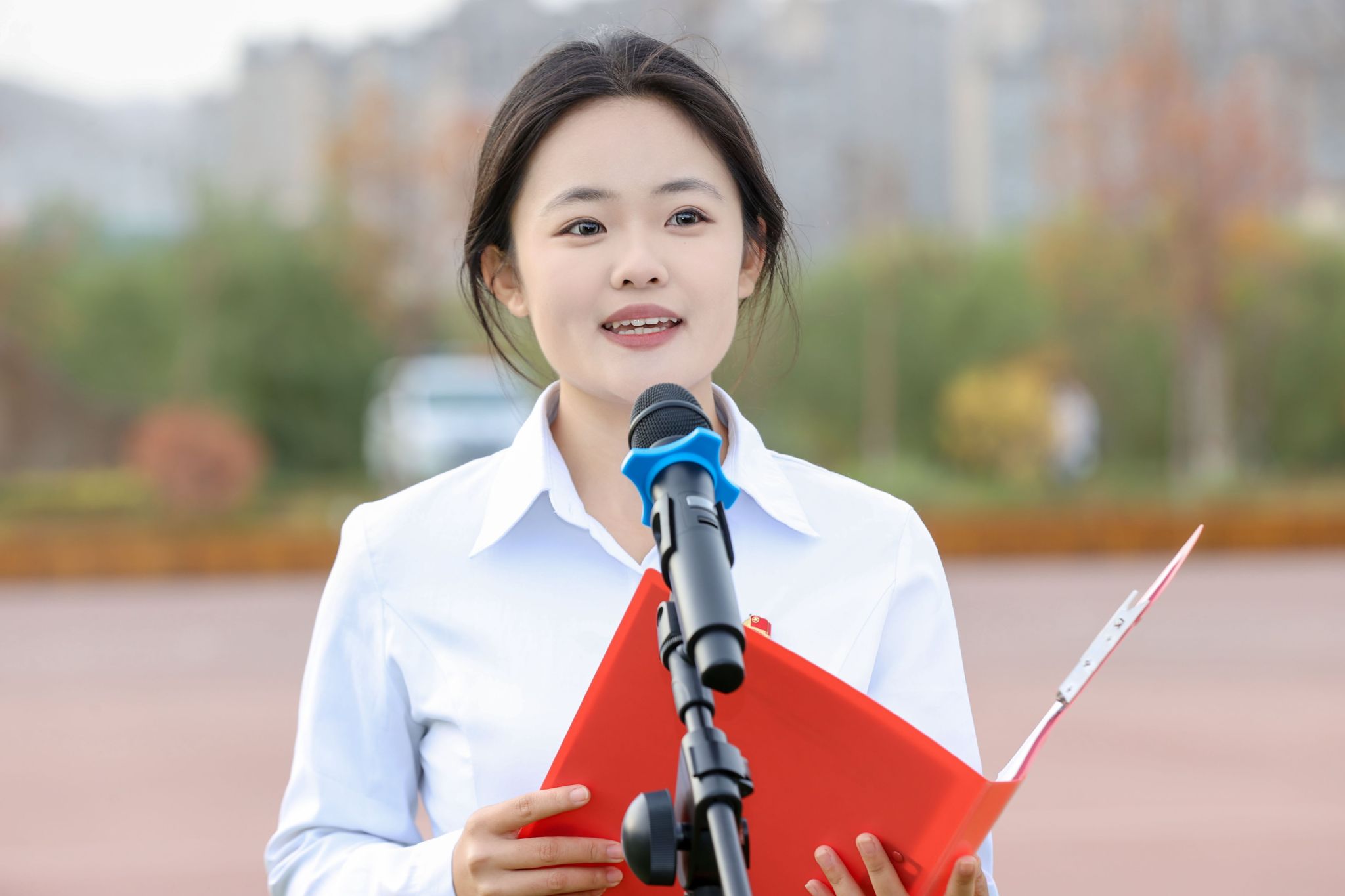 学生代表,商学院国际经济与贸易24-4班王若琳、物理与电子工程学院物理学24-3班麦迪乃姆·阿布来提分别作国旗下发言,以饱含深情的话语,满怀自豪地赞叹了76年来中华人民共和国从积贫积弱到繁荣强盛的发展,感慨新疆70年来的惊人变迁,坚定表示新时代青年应当接过历史的接力棒,牢记“博学笃行,为人师表”的校训,以“心有大我、至诚报国”的担当挺膺时代重任,将个人理想追求深度融入国家发展大局,用青春作笔、奋斗为墨,在建设美丽新疆、助力民族复兴的征程中书写无愧于时代、无愧于祖国的青春华章。