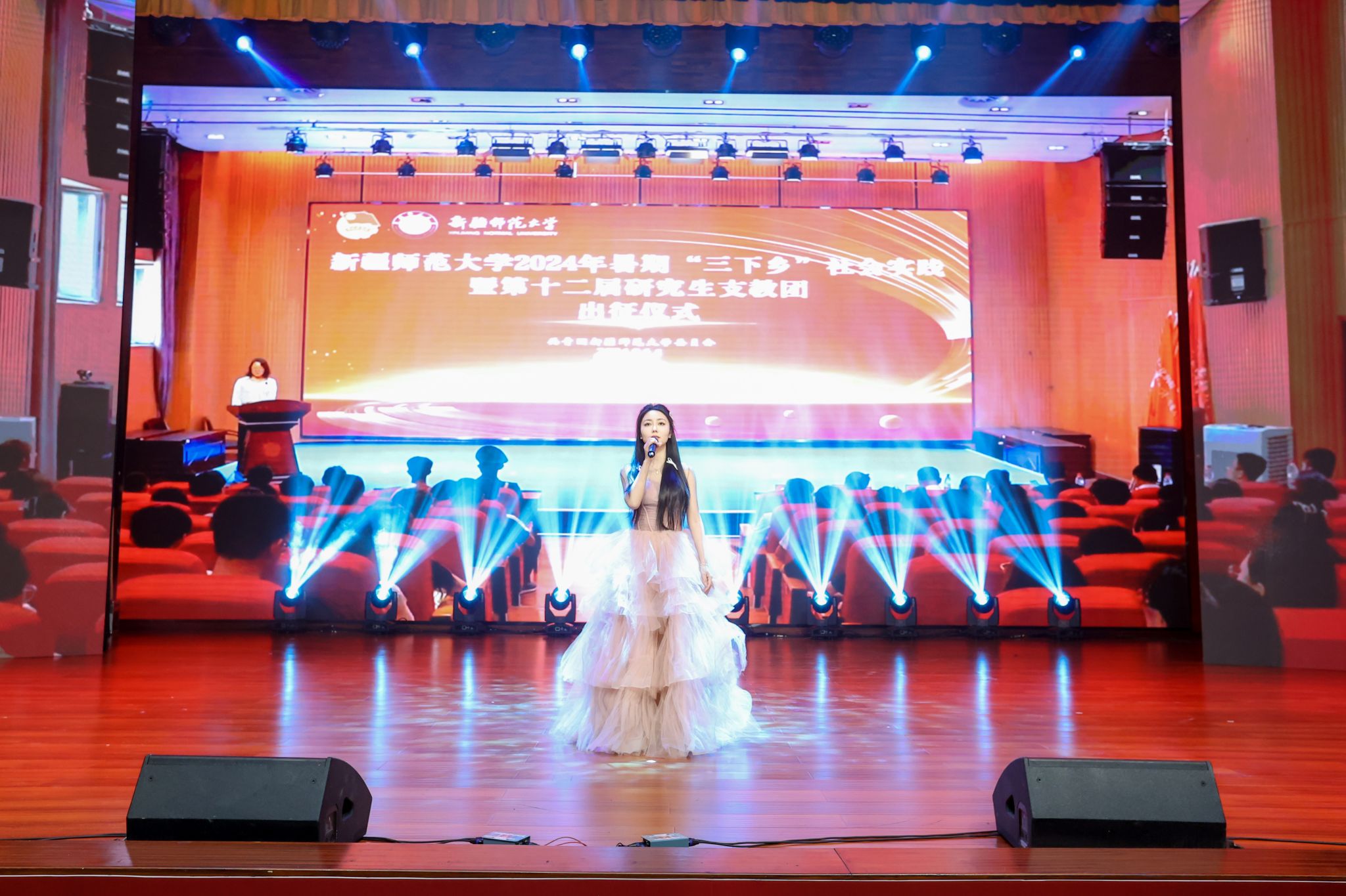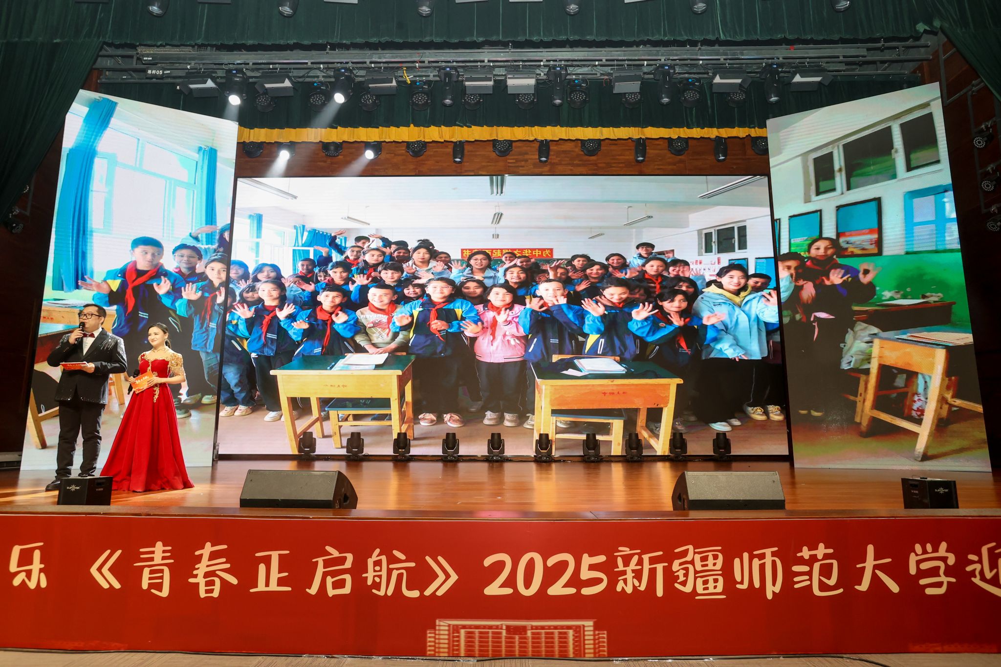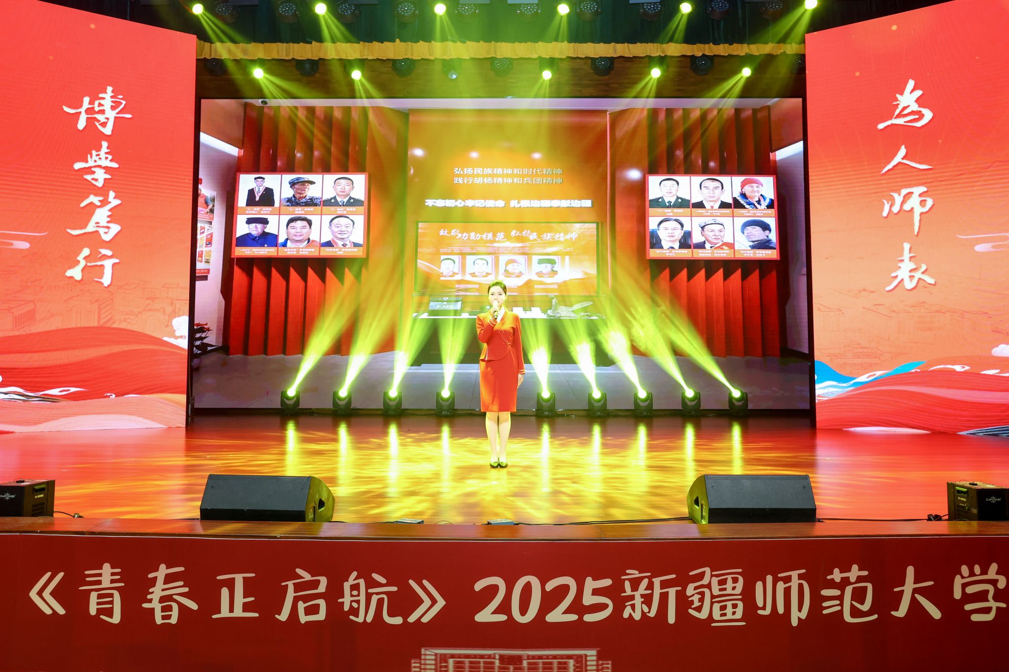 晚会在全体演员与观众齐声高唱《红旗飘飘》的激昂歌声中圆满落幕。红旗飘扬,歌声嘹亮,展现了新时代师大学子与祖国同行、与时代共进的坚定信念。