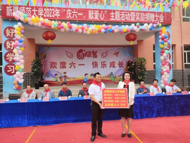 深入推进学习贯彻习近平新时代中国特色社会主义思想主题教育,持续推进学校党委教育帮扶工作,切实提高帮扶工作实效性和针对性,在“六一”儿童节到来之际,学校驻莎车县前方党工委对亚喀艾日克乡中心小学300名、孜热甫夏提塔吉克民族乡中心小学200名共计500名表现优异的学生进行了表彰并赠送了学习大礼包,同时向亚喀艾日克乡中心小学捐赠总价值10.8万元图书资料、学习用具、教学设备等,为孩子们送上了节日的祝福和浓浓的关爱。