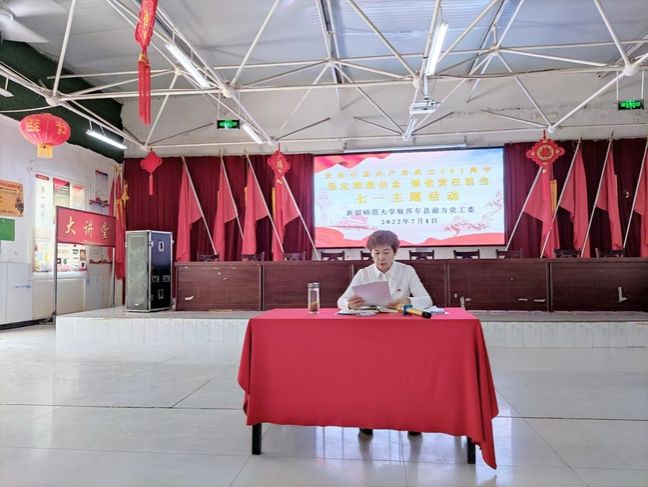 为庆祝中国共产党成立101周年,7月1日下午,学校驻莎车县前方党工委举办了“坚定理想信念 强化责任担当”七一主题活动校党委常委、副校长、驻莎车县前方党工委书记孙秀玲出席活动并讲话,我校6个工作队全体党员参加,活动由前方党工委委员、组织委员侯亚文主持。