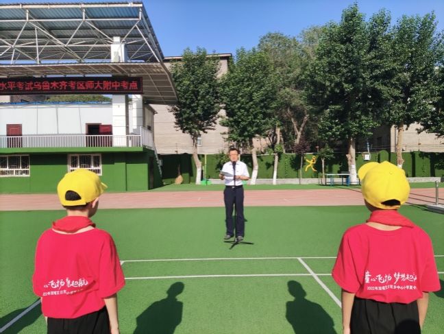 7月5日上午,在附属中学校园举行了夏令营开营仪式,附属中学全体校领导,师大校团委书记陆娇、党委组织部五项办主任蔡永亮、大学生志愿者、全体授课教师参加了仪式。开营仪式在雄壮的国歌声中拉开序幕,全体学生进行国旗下宣誓附属中学党委书记吕志新进行开营致辞,他代表附中5000名师生,对不远千里来到天山脚下参加夏令营活动的师生表示热烈的欢迎,他对孩子们提出几点具体要求:希望同学们能够珍惜来之不易的学习机会,增强安全意识,严格遵守疫情防控要求,遵守夏令营各项管理制度,锻炼自己,学会与人和睦相处,学更多的知识,懂得更多的道理,快乐地度过一个丰富多彩的、充实的、有意义的暑假,为自己的人生留下美好回忆。
