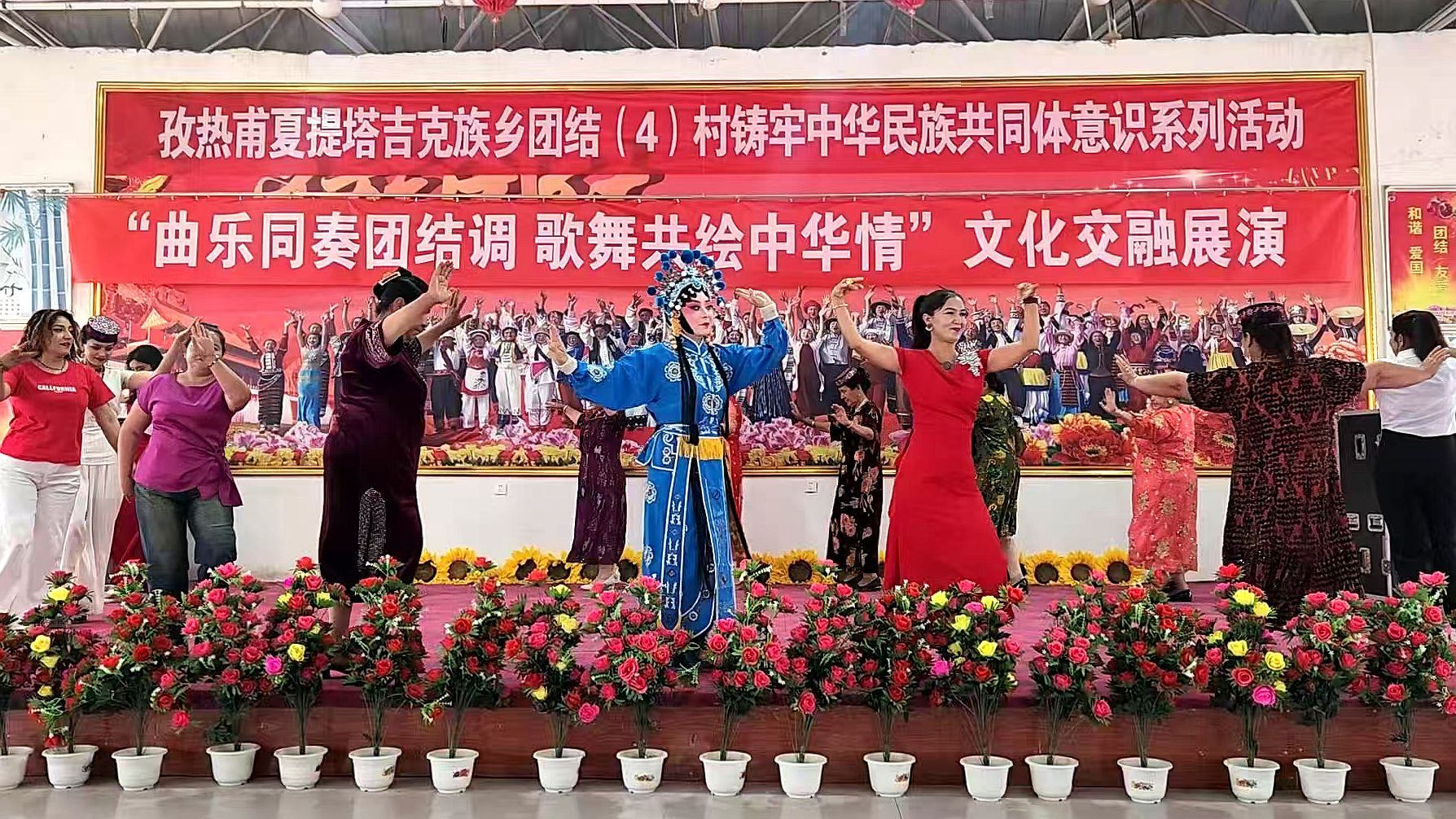 5 月 4 日,在孜热甫夏提塔吉克族乡团结(4)村村民活动大厅,一场以 “曲乐同奏团结调,歌舞共绘中华情” 为主题的文化交融展演活动精彩上演。此次活动由我校驻孜乡团结(4)村工作队与村党支部主办,新疆秦剧团(乌鲁木齐市秦剧团)8位演员与村腰鼓队、舞蹈队农民演员一同演出。共青团莎车县委、乡党委领导及我校各驻村工作队队长参加活动。