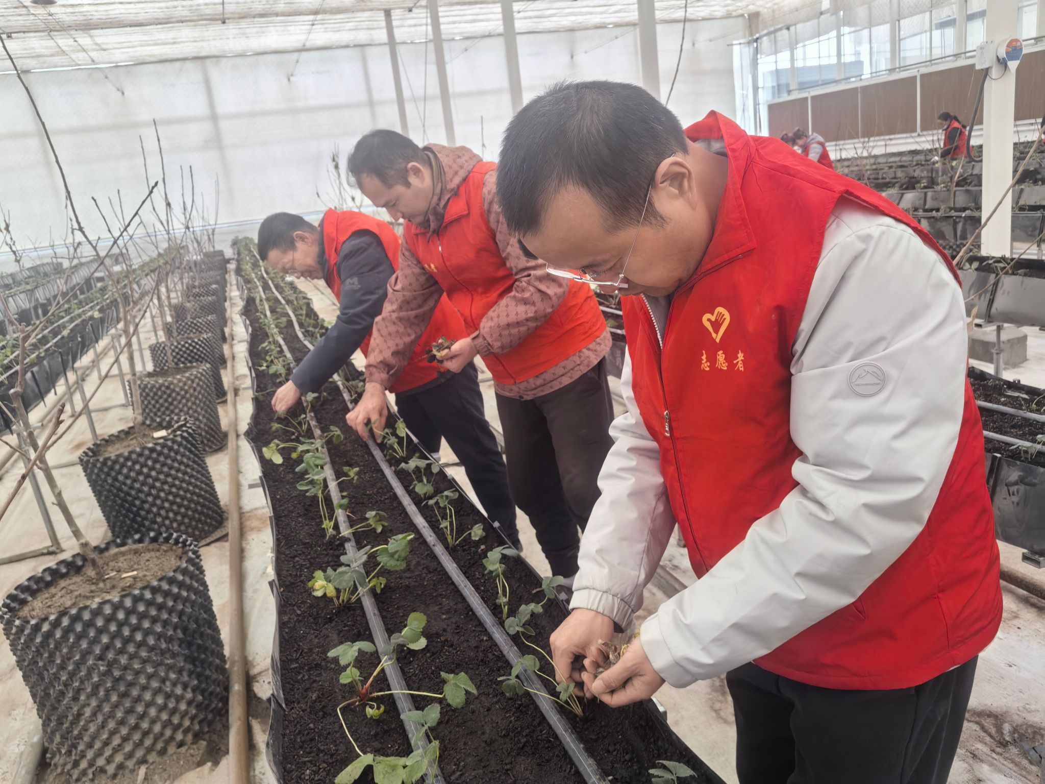 孜热甫夏提塔吉克族乡孜热甫夏提(3)村工作队党支部联合村党支部带领党员学习中国共产党第二十届中央委员会第四次全体会议公报和习近平总书记关于全面依法治国工作的重要指示批示精神,重温入党誓词和接力诵读党章,观看党的二十届四中全会专题解读视频与宪法普法宣传视频,组织党员在村小微现代农业产业园开展志愿服务活动,在园内玻璃温室大棚种植草莓和养护樱桃树苗。