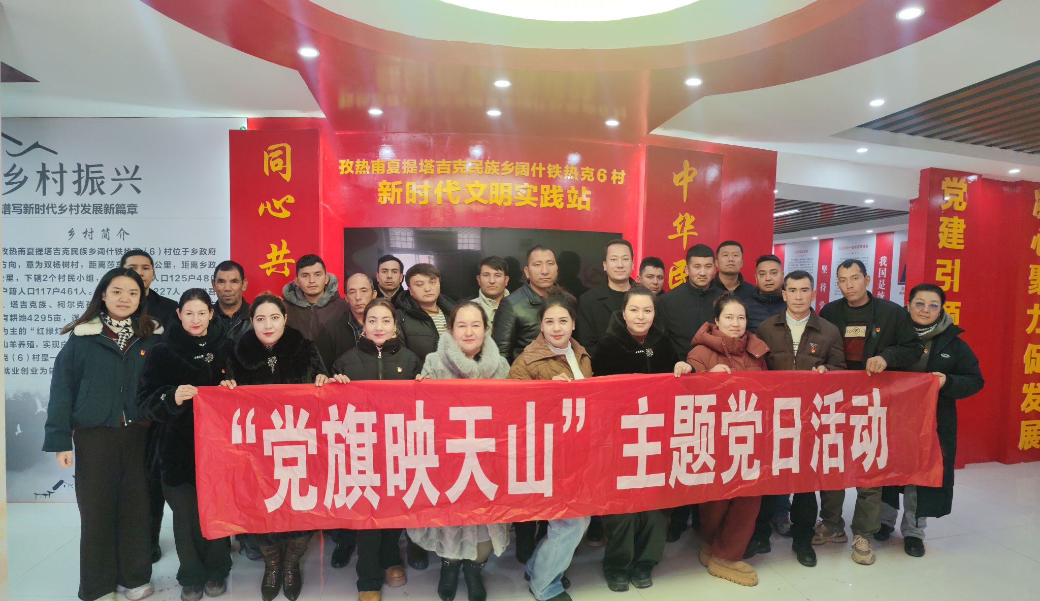 孜热甫夏提塔吉克族乡团结(4)村工作队党支部联合村党支部组织党员学习《求是》杂志发表习近平总书记重要文章《推进党的自我革命要做到“五个进一步到位”》,重温入党誓词,并开展“团结志愿行、暖冬筑幸福”主题志愿服务活动,组织党员代表围绕“弘扬革命文化,发挥党员模范带头作用”主题进行交流发言。