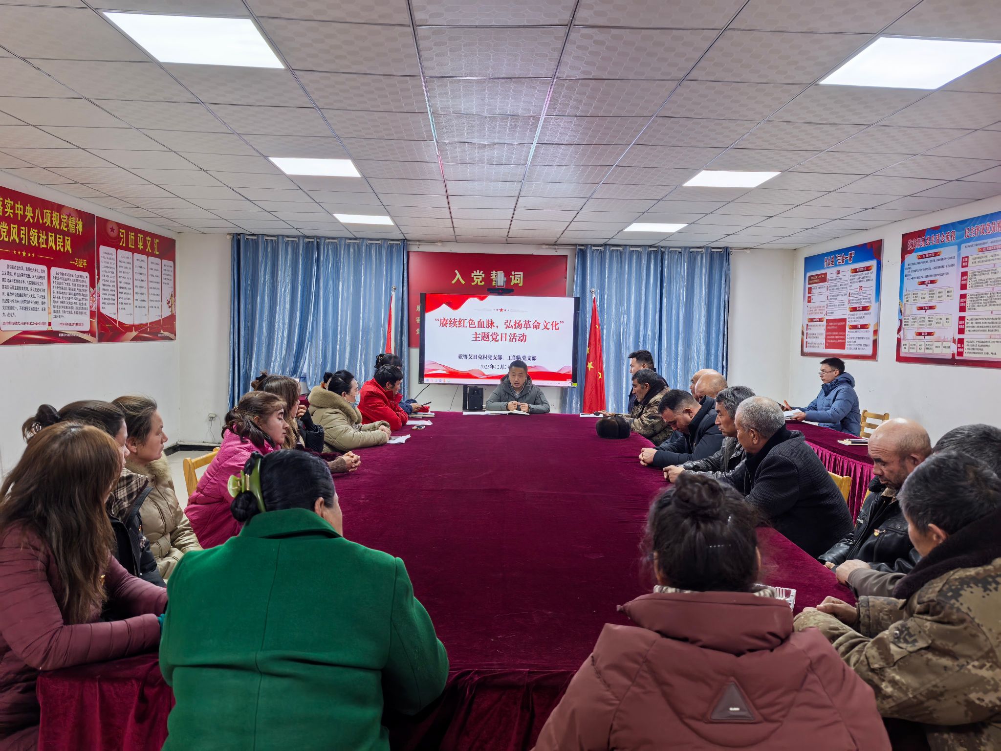 亚喀艾日克乡亚喀艾日克(8)村工作队党支部联合村党支部组织党员学习中央经济工作会议精神,重温入党誓词,观看爱国主义电影《长津湖》,党员代表结合学习内容和自身工作实际分享心得体会。